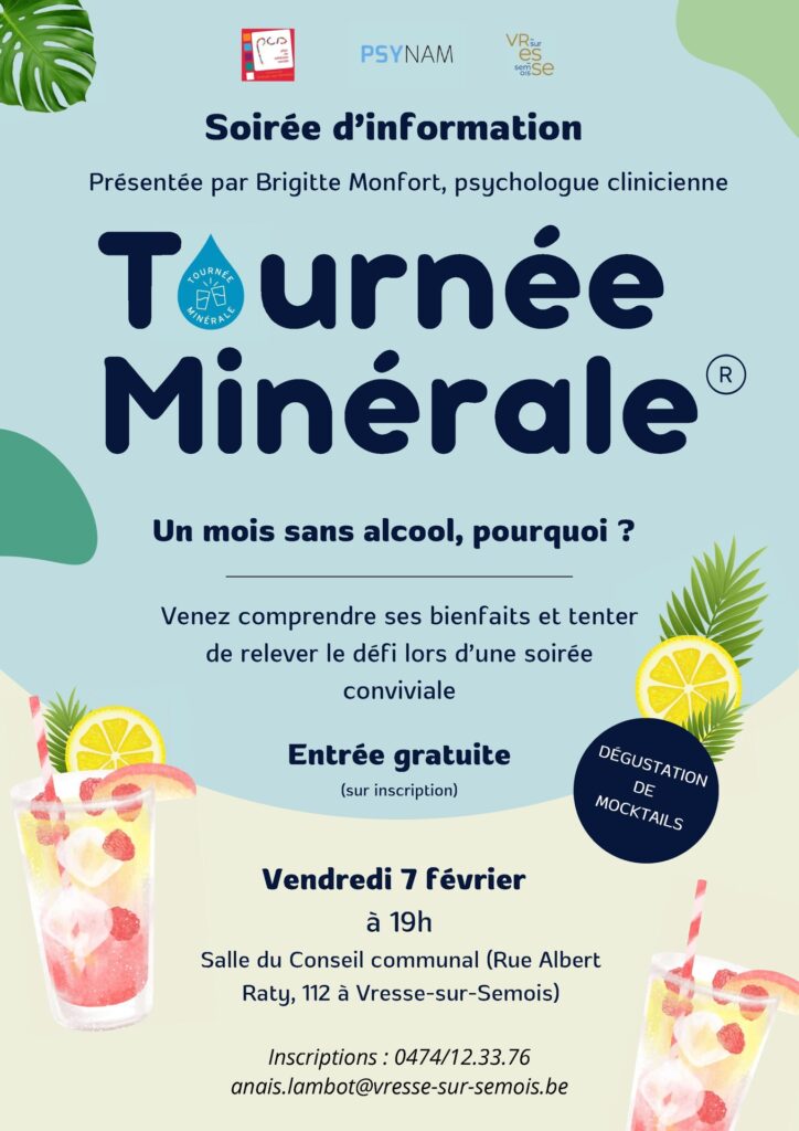 PSYNAM s’engage pour la première année à l’occasion de la Tournée Minérale® en proposant une série d’ateliers et conférences participatives sur les enjeux de la consommation d’alcool. Ces événements, animés par des psychologues conventionné.e.s PSYNAM, s’adressent au grand public et visent à ouvrir le dialogue sur un sujet parfois délicat, tout en offrant des outils concrets pour promouvoir la santé mentale et physique.