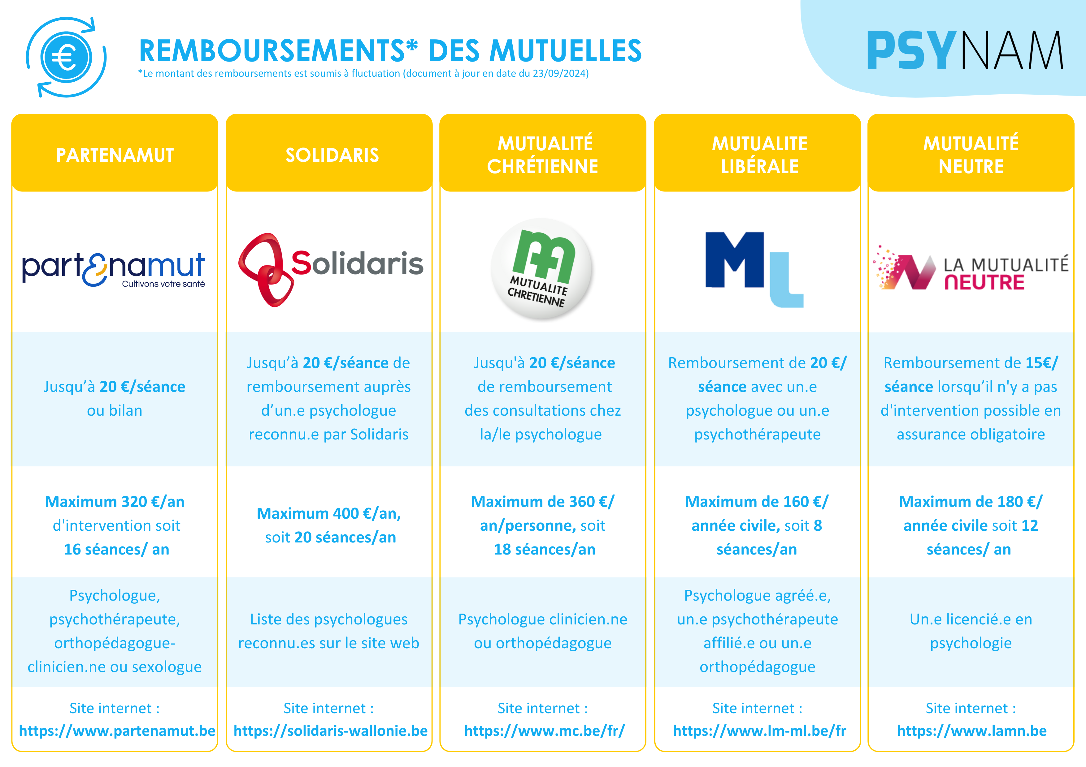 Cette initiative est destinée à la Région Namuroise. Si je cherche un.e psychologue conventionné.e en dehors de Namur, je consulte les sites partenaires.